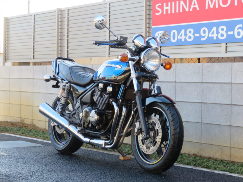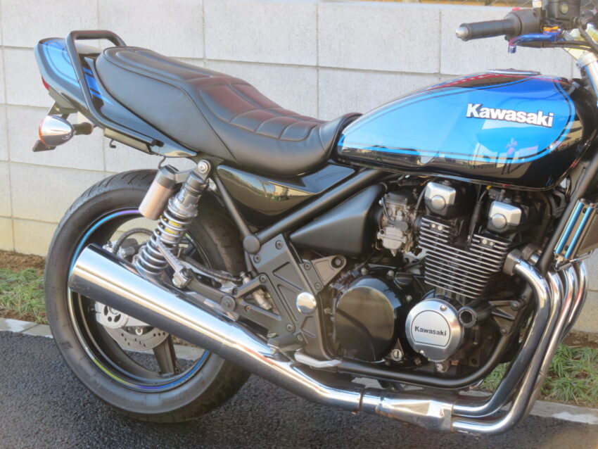 【埼玉店 ベース車両】カワサキ ZEPHYRχ B0414 ブルーボール Z2テールランプ エンジンスライダー 前後ブラックホイール フェンダーレス ETC