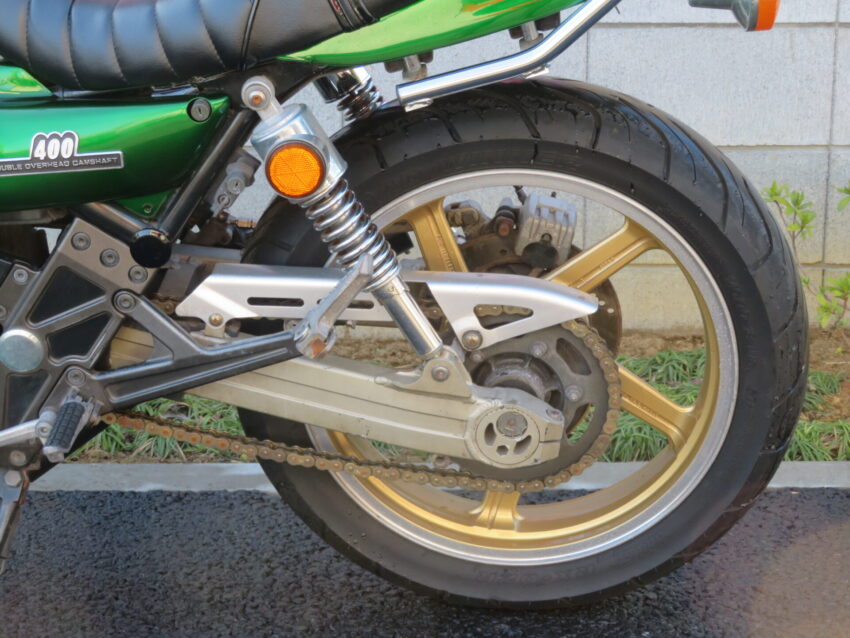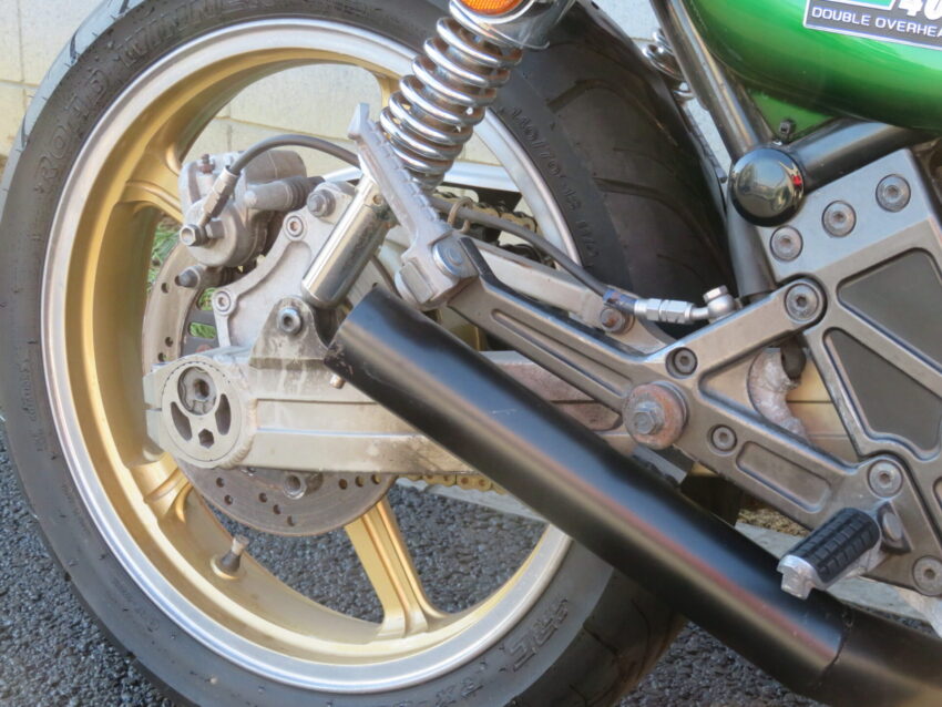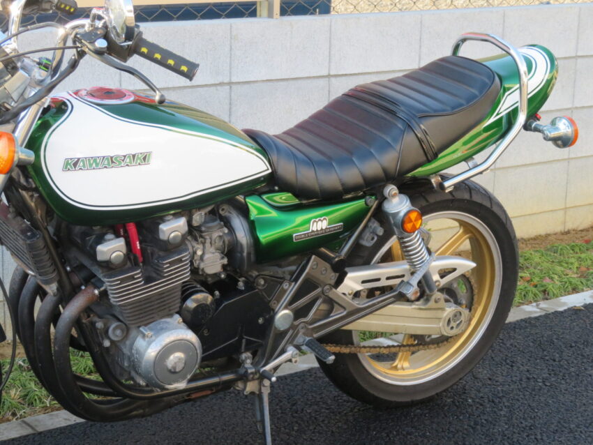 【埼玉絶版館 ベース車両】カワサキ ZEPHYRχ B0417 Z2外装 ブラック集合管 マーシャルイエローレンズ タックロール アップハンドル フェンダーレス