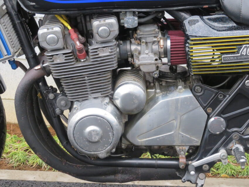 【埼玉絶版館 ベース車両】カワサキ ZEPHYR400 B0423 ブラック集合管 アップハンドル マーシャルクリアー アルフィンカバー Z2テール タックロール