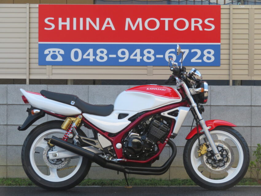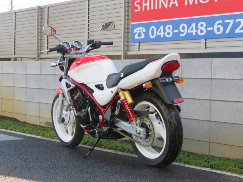 【埼玉絶版館 ベース車両】BALIUS-Ⅱ B0442 ブラック集合管 前後ホワイトホイール レッドフレーム マルチリフレクター