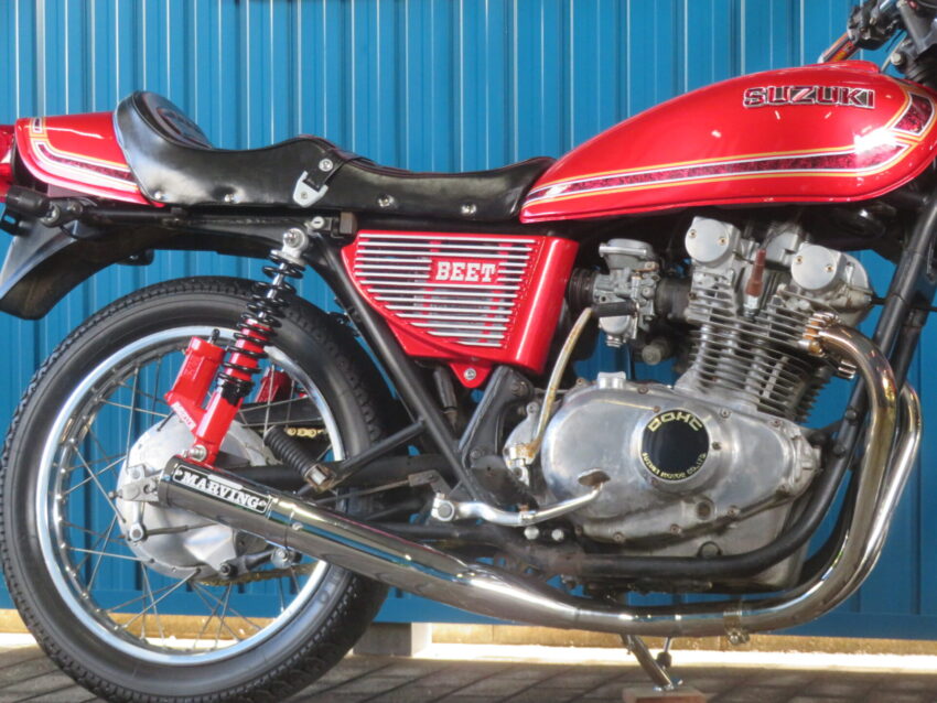 【市川絶版館 ベース車両】スズキ GS400 HB0095 メッキ集合管 BEETアルフィンカバー スモークウインカー 逆車