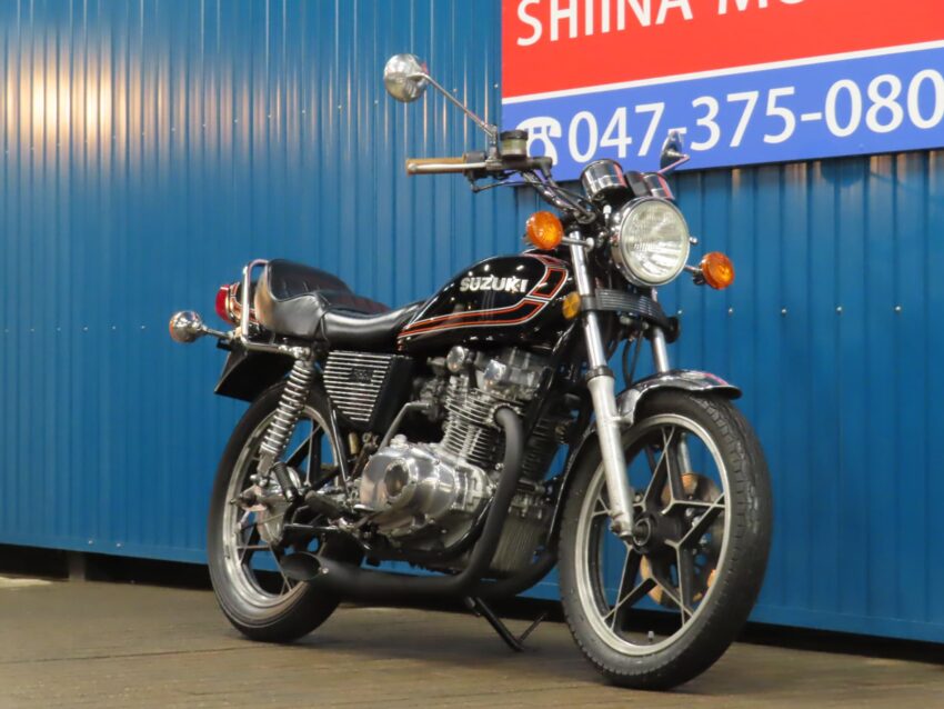 【市川絶版館 ベース車両】スズキ GS400 HB0133 逆車 ハス切りマフラー アップハンドル 星形キャストホイール BEETアルフィンカバー