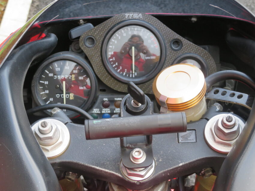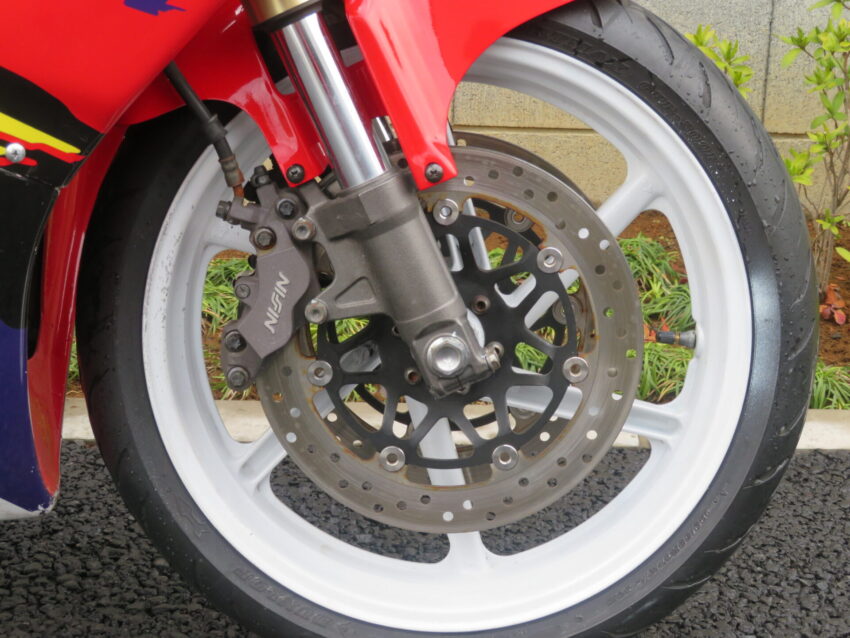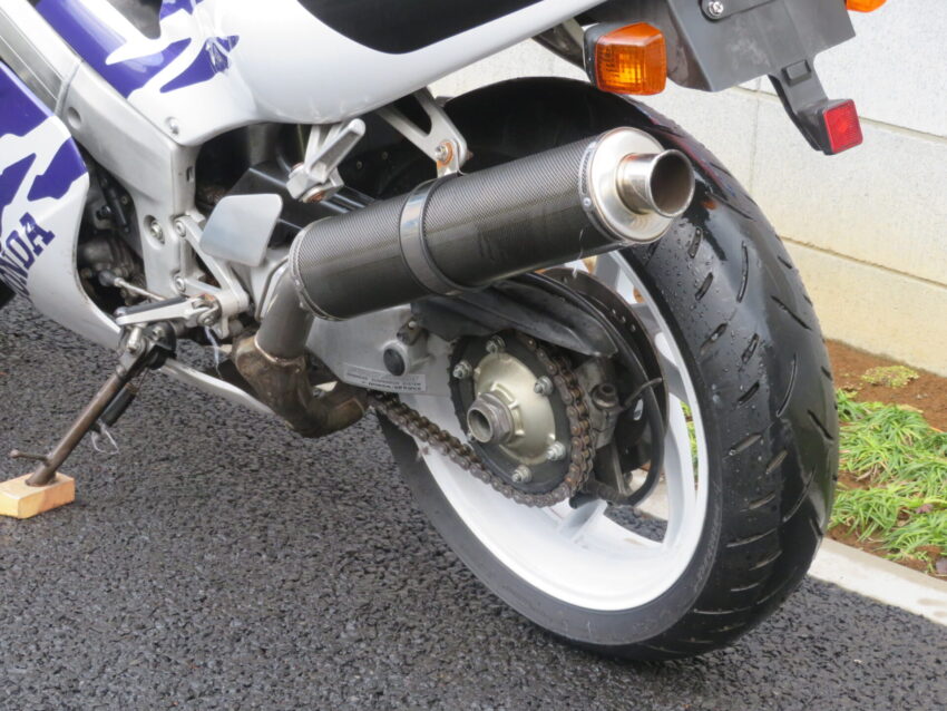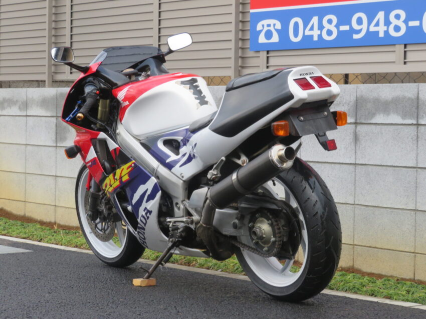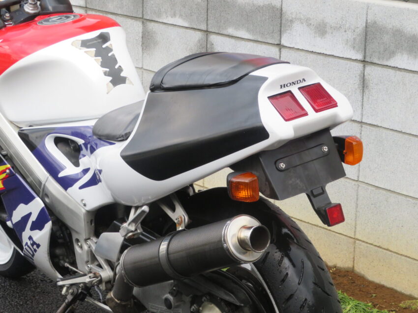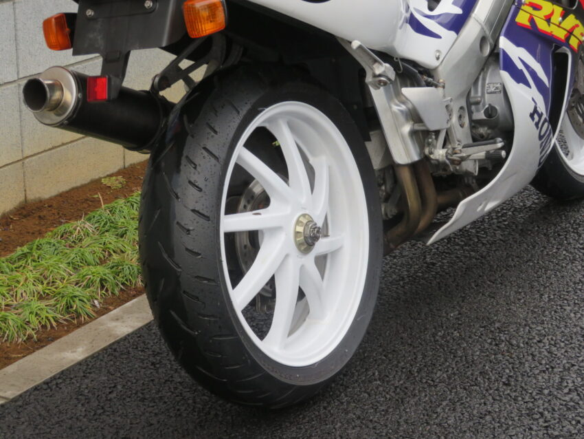 【埼玉絶版館 ベース車両】ホンダ RVF400 B0425 カーボンマフラー プロアーム 前後ホワイトホイール ニッシンマスターシリンダー ETC